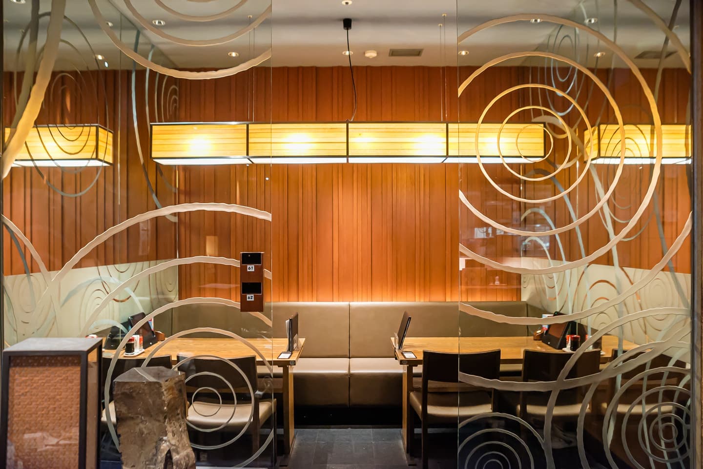 渦をテーマとした店内は、首相官邸と同じ石材をふんだんに使い、また天然木との組み合わせで暖かみのある空間をイメージして造られておりますので、ゆったりとした時間をお寛ぎ下さい。