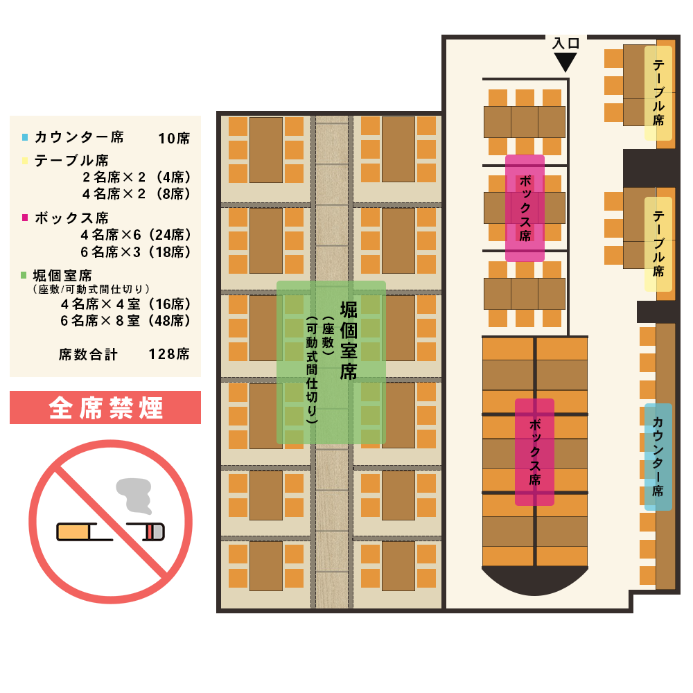 ご家族連れや会社帰りに職場仲間と、ご友人と、ちょっとした集まりから大宴会まで多様なシーンに大小様々な空間をご提供。