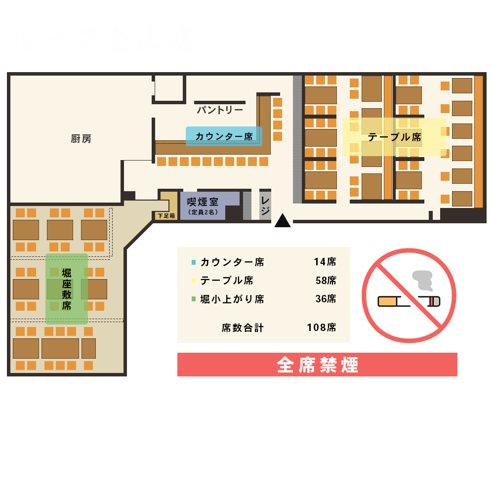 こだわり空間、109席。